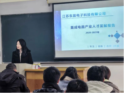 进一步拓展江苏东晨与江苏大学物电学院的校企合作模式,2021年12月23日,我司防护事业部总工程师黄亚发先生、行政人资总监韦薇女士受邀为江苏大学-物理与电子工程学院的2021级学生授课。90分钟的课程,两位企业老师分别为同学们介绍了防护产品和集成电路产业的人才发展情况,得到了同学们的积极响应和好评。 课程结束后,两位企业老师与物电学院的各位主任、导师进行了《微电子科学与工程专业培养方案》的讨论,结合江苏东晨+物电学院的双向需求,更好得完善了学院的教学计划,让同学们不仅能学习到专业基础知识,更能和企业市场紧密对接,为将来成为该领域科研和管理工作的高素质人才打下坚实基础。